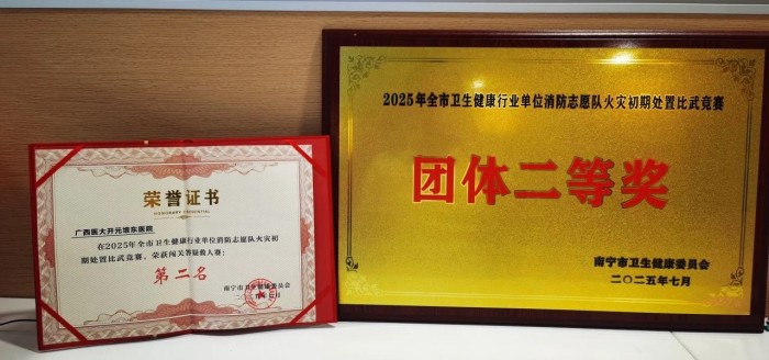 7月28-29日,南宁市卫生健康委员会主办全市卫生健康行业单位消防志愿队火灾初期处置比武竞赛顺利落下帷幕。我院参赛队在全市89家参赛医疗机构中脱颖而出,荣获“团体二等奖”及“闯关答疑救人赛”单项第二名的优异成绩。