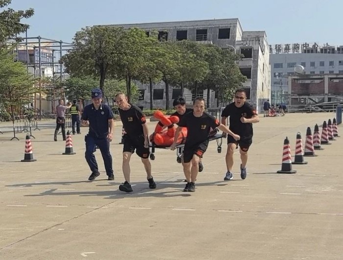 本次大赛旨在提升医疗卫生机构的消防安全意识和应急处置能力,设置了贴近实战的竞赛项目,包括:两人五盘水带连接赛、闯关答疑救人赛、利用室内消火栓沿楼梯蜿蜒铺设水带赛。这些项目全面考验参赛队员的消防技能、团队协作和应急处置能力。